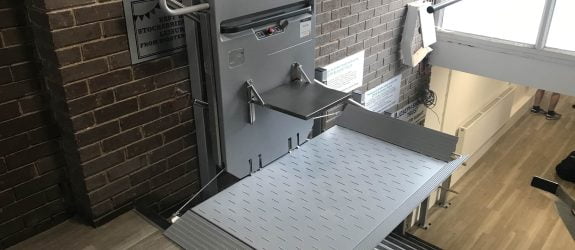 Our Inclined Platform Lift is designed to carry a wheelchair up and down an existing set of stairs. It is designed to keep the user on a level platform as the lift follows the incline of the stairs, whilst automatic safety barriers keep the user secure on the platform throughout the travel. Our Inclined Platform Lift provides a great, cost effective solution to providing access between levels where a vertical lift is not practical to fit. The platform can be folded vertically when not in use keep stairways clear and can be fitted both internally and externally with a wide range of finishes.